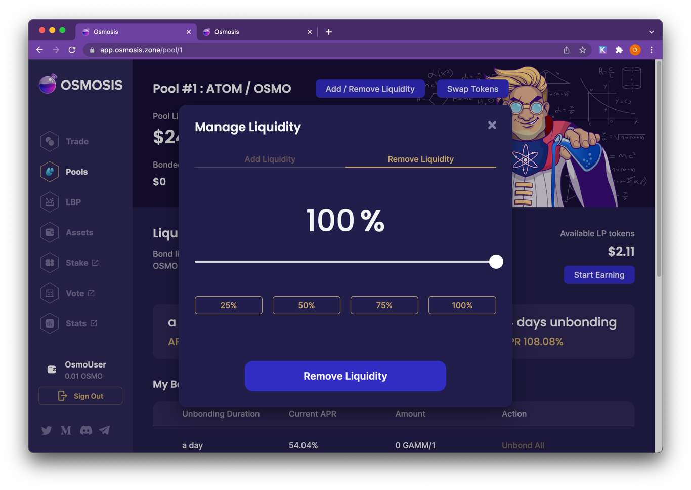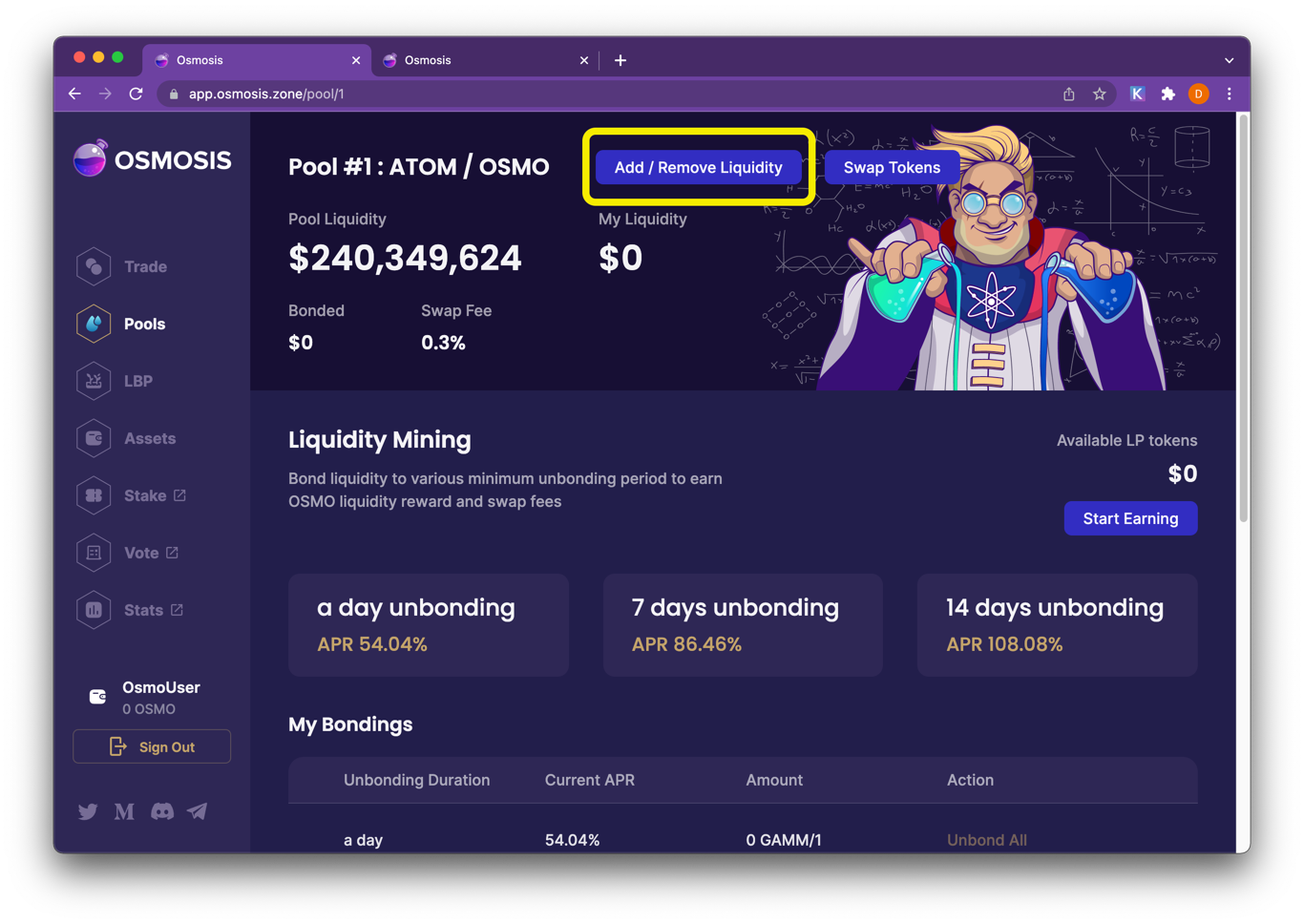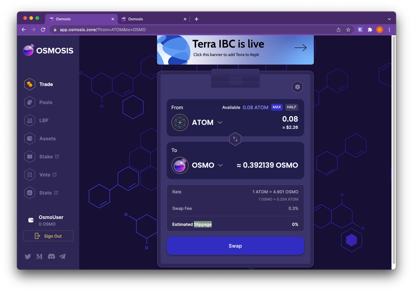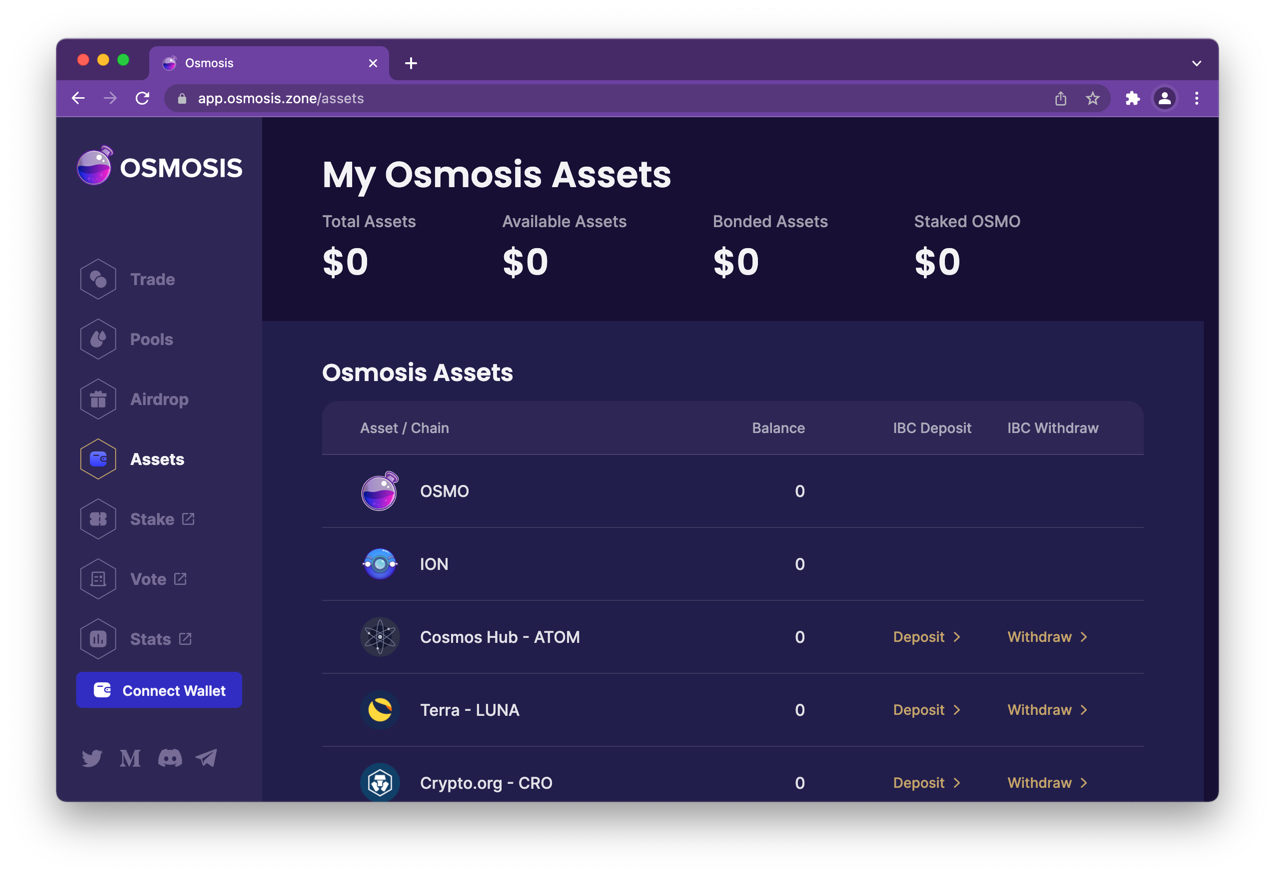 Go to https://app.osmosis.zone/