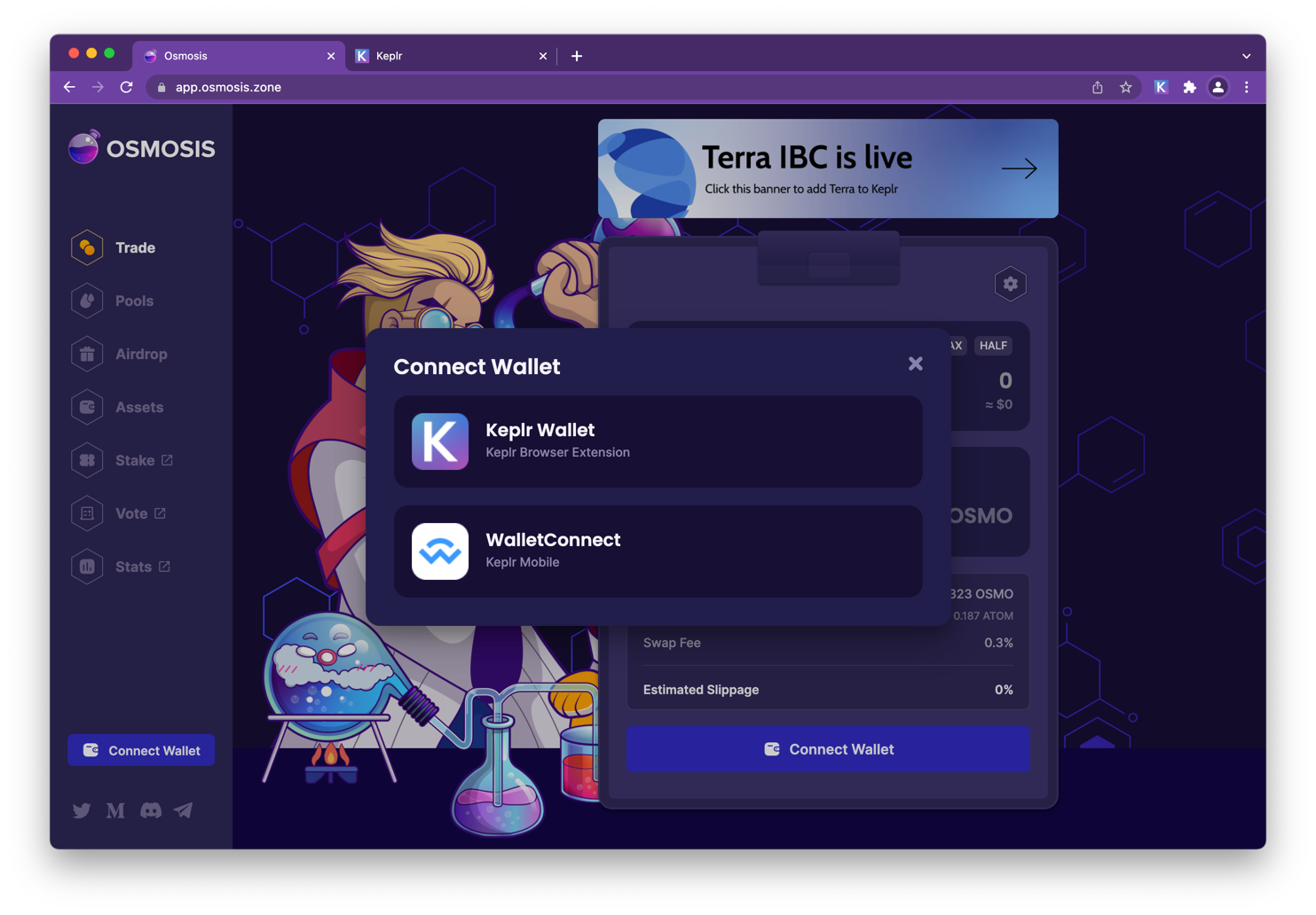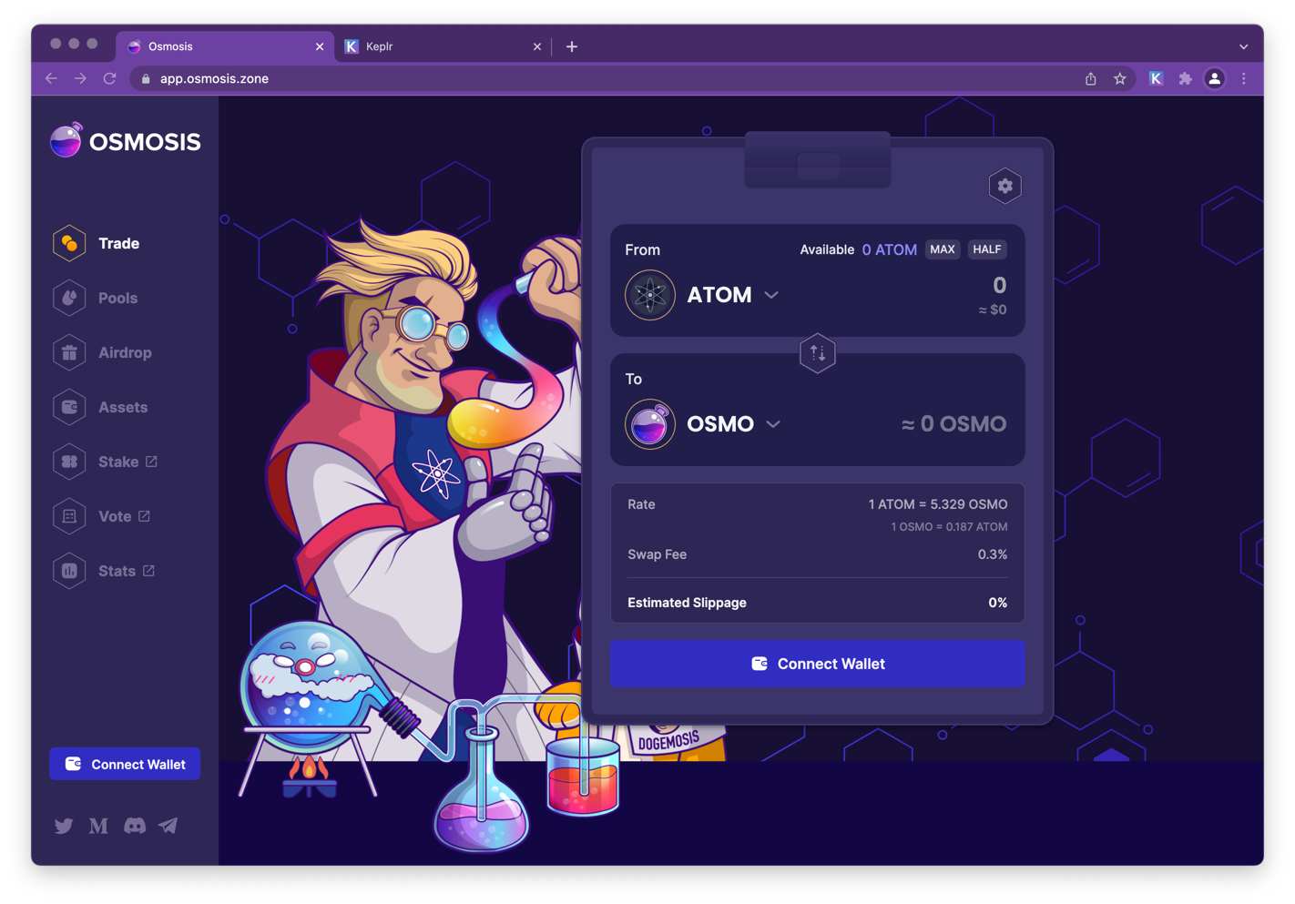 Before opening the Osmosis AMM App, make sure to install a wallet such as Keplr Wallet.